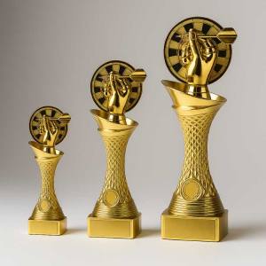 • Designs: Die Designs reichen von klassischen Pokalformen über moderne, abstrakte Kreationen bis hin zu spezifischen Dart-Motiven. Einige Pokale verfügen über Zusatzelemente wie Dartpfeile oder Zielscheiben, die das Thema Darts besonders hervorheben.